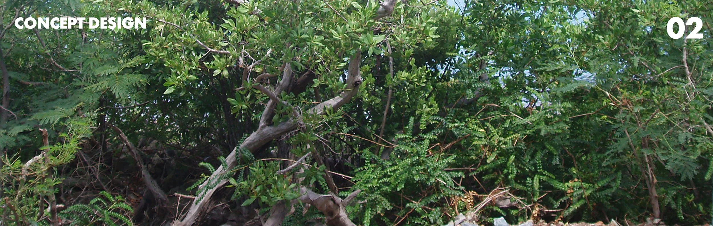 The site analysis revealed a complex coastal setting bordered by a salt pond, mangrove edge, and upland woodland. Existing vegetation was mapped, noting areas for protection, enhancement, and phased replanting. Sun orientation, stormwater flows, and views were layered into the study to identify opportunities for circulation, garden placement, and ecological restoration. This early analysis guided the project’s phasing strategy—prioritizing erosion control, planting stabilization, and stormwater management while framing key vistas to the ocean and salt pond.