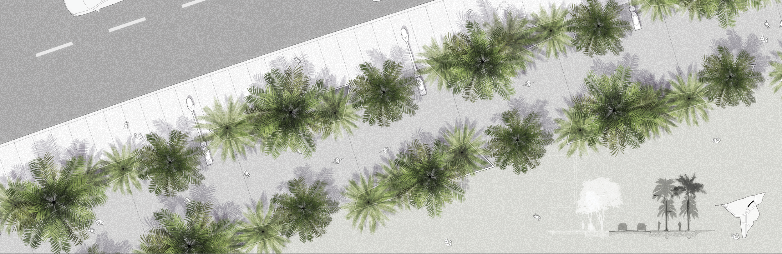 Trees thrive—and withstand hurricanes—when grown close together, their branches and roots interwoven as in natural habitats. The Saman Boulevard is not a nostalgic return to the past but a call to reintroduce large, continuous plantings as the backbone of urban districts. Here, trees are not ornamental additions but integral infrastructure, planned alongside roads, sidewalks, and utilities to shape the city’s form and function.